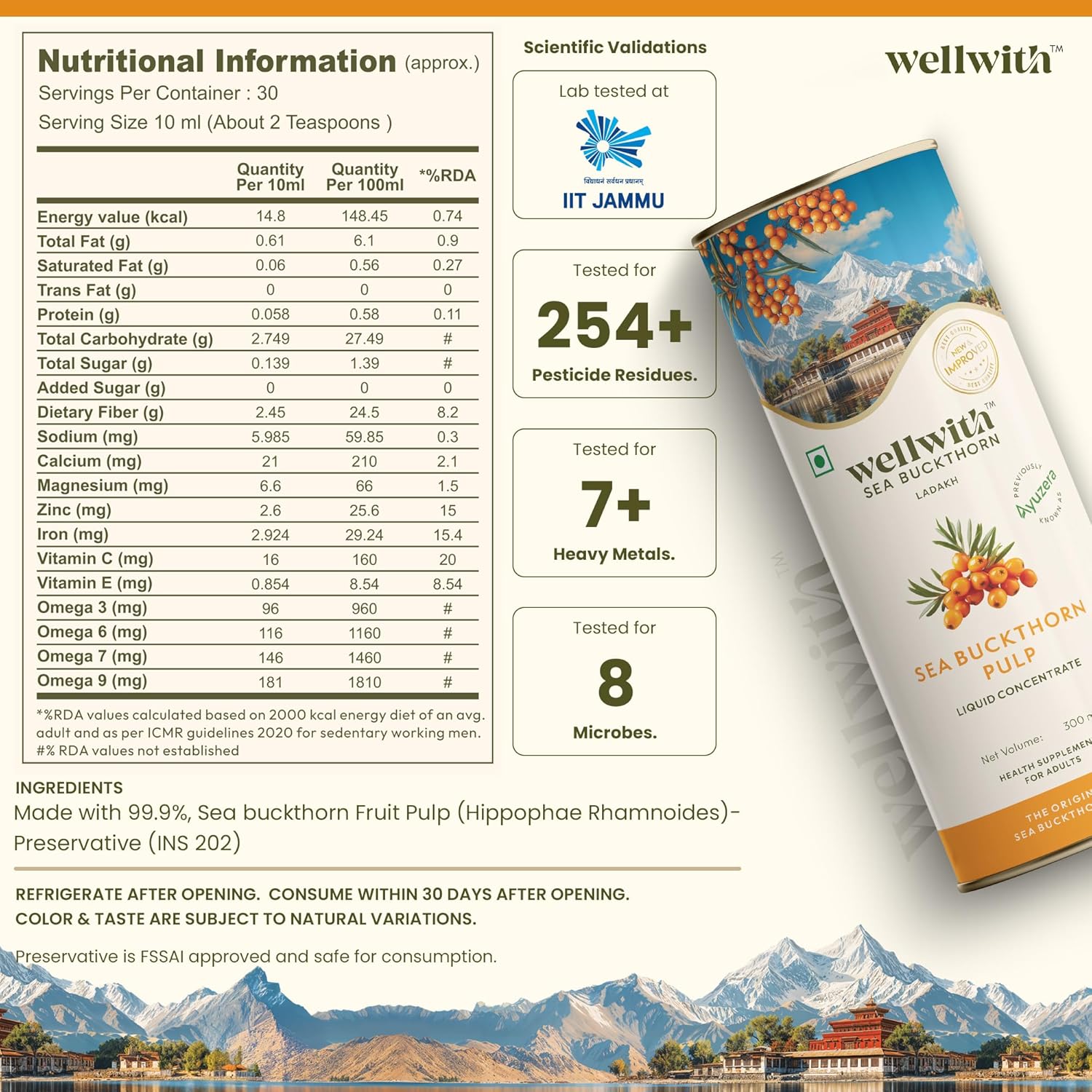 Ayuzera (Wellwith) Himalayan Sea Buckthorn Pulp Concentrate 300ml | Cold-Pressed | Makes 50 Glasses | Natural Vitamin C, Omega 3 6 7 9, Antioxidants | Immunity, Skin Glow & Gut Health Support | Juice Seabuckthorn