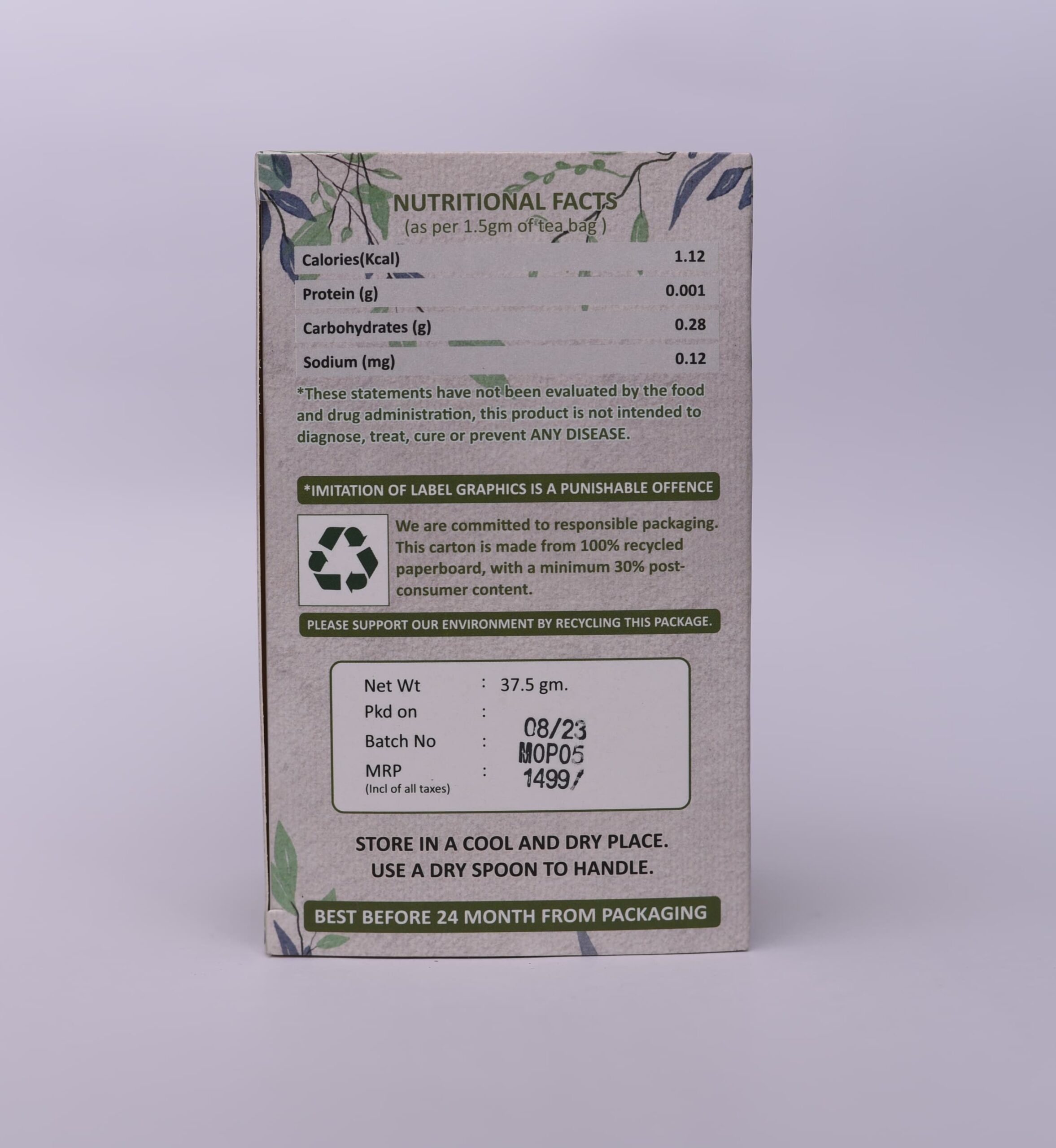 INGREDIENTS: Moringa Leaves and Peppermint.